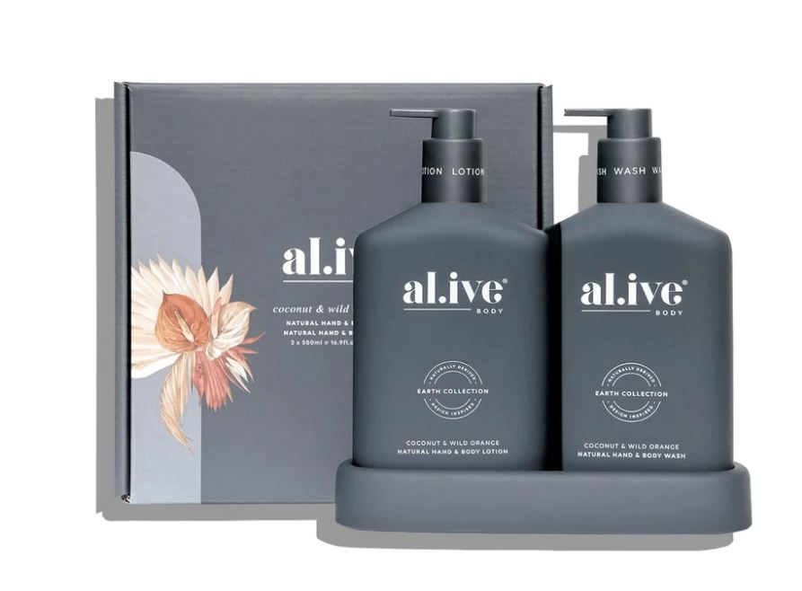 The al.ive Body Wash & Lotion Duo Pack Coconut & Wild Orange contains a luxurious blend of naturally derived ingredients, fortified with essential oils and native botanical extracts.