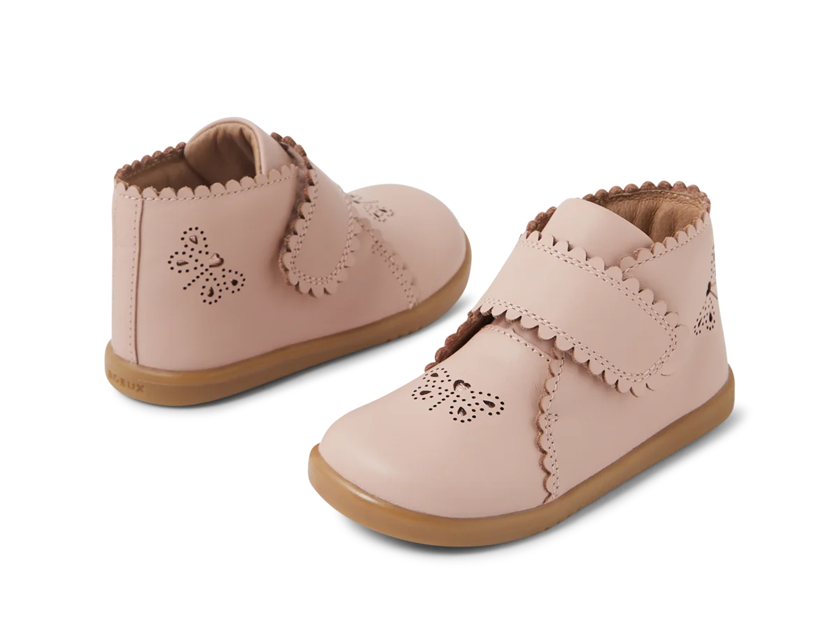 Bobux I-Walk Willow Cameo Rose Boots dress up any outfit with ease. The wide adjustable strap makes it easy for little hands to secure, while the sole flexes with the natural movement of the foot, keeping them comfortable on the go. Crafted in soft leather, WILLOW is enhanced with cut-outs and pinked edges for a stylish finish. This Bobux design is suitable for confident young walkers.