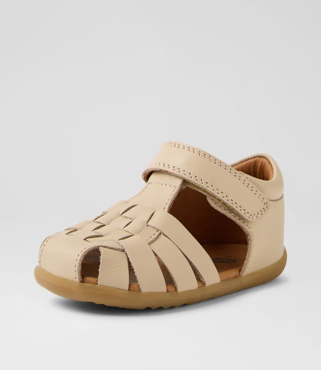 This Bobux Step Up Harbor Toddler Taupe Leather Sandals are stylish and practical design for warm weather, HARBOR has an open silhouette crafted from leather and a single strap for quick, easy fastening. Fully enclosed at the heel and partially enclosed at the toe for a protective but breathable fit, the pair is finished with a flexible sole that embodies our philosophy on natural movement. This design is suitable for first walkers.