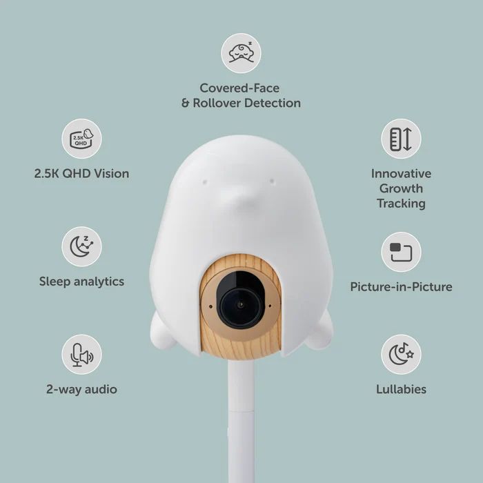 Receive proactive notifications for covered faces, rollovers, cries, or coughs. Enjoy peace of mind with 2.5K QHD video and advanced safety alerts. Check in anytime, anywhere, and ensure your baby is safe and sound!