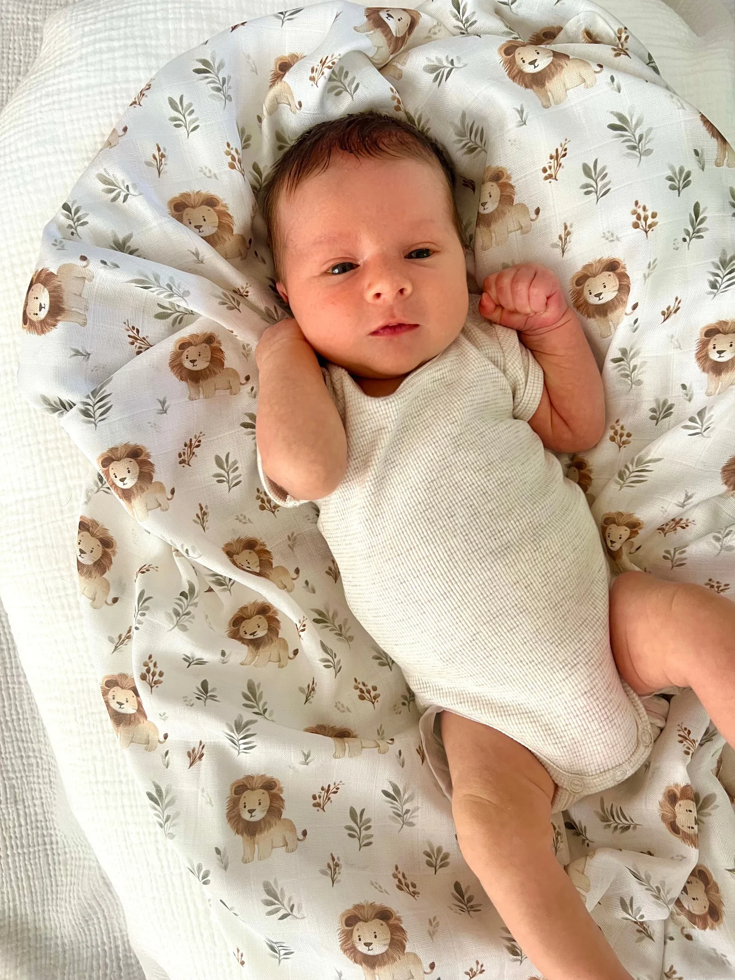 The Cuddle Bug & Co Bamboo Muslin Wrap Leo Lion is luxuriously soft, lightweight & breathable.