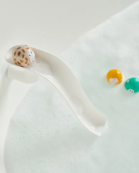 Matchstick Monkey Slide Set encourages the early development of hand-eye coordination, as the easy-to-grip animal rocks can be placed at the top of the slide, where they go splashing down into a foamy mountain of bubbles!