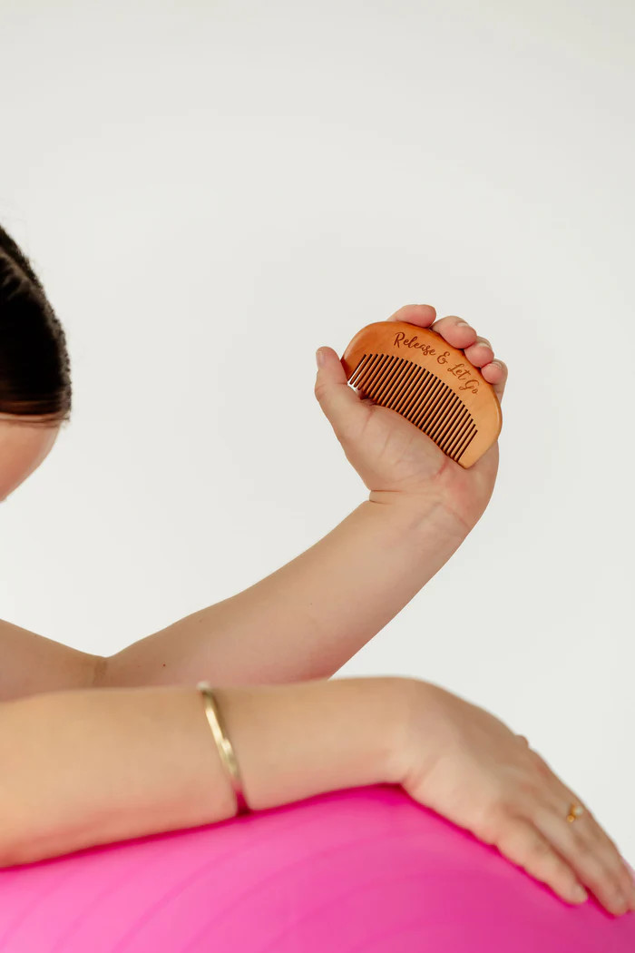 At the peak of a contraction grip the comb in your hand on the lao gang acupressure point and along with some calm breathing, you’ve got this Mama!