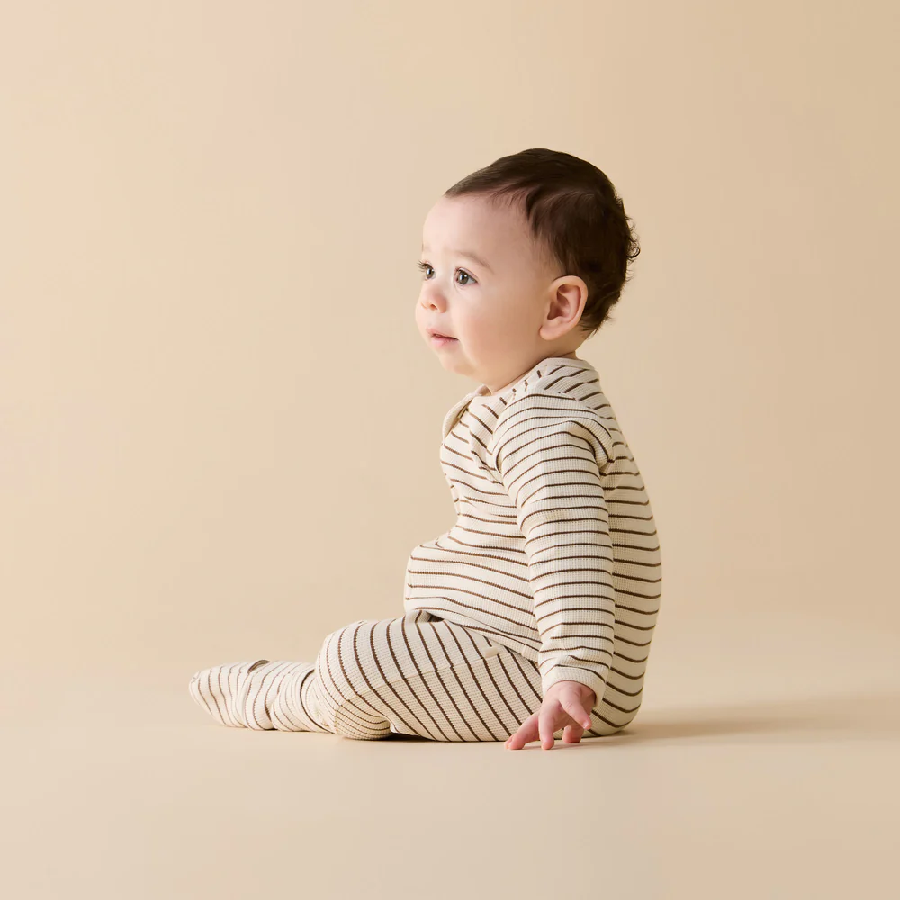 Wilson & Frenchy Nutmeg Stripe Organic Waffle Zipsuit Description