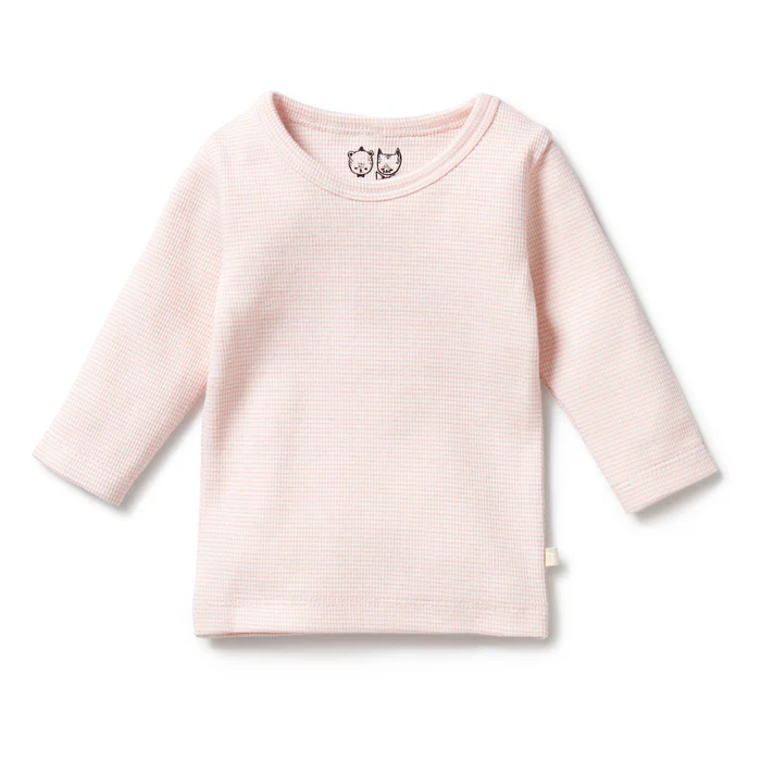Wilson & Frenchy Organic Stripe Rib Long Sleeved Top Cantaloupe with snap button neckline is made with GOTS certified organic cotton rib, a perfect staple for your little ones wardrobe.